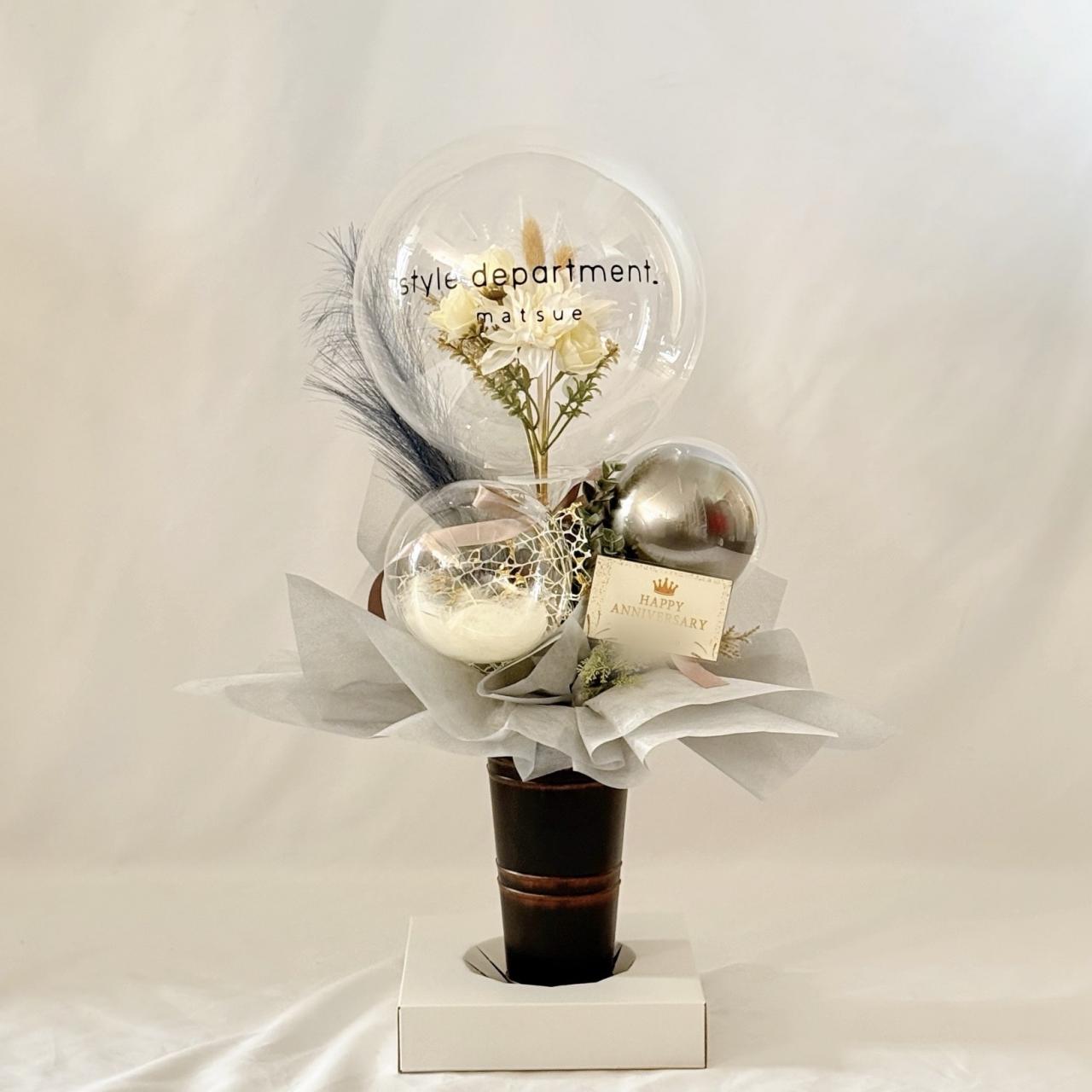 周年祝い / 店名入り / バルーンギフト / 透明バルーン / ドライフラワー / ホワイト / シルバー / 松江 / 島根 / 全国発送