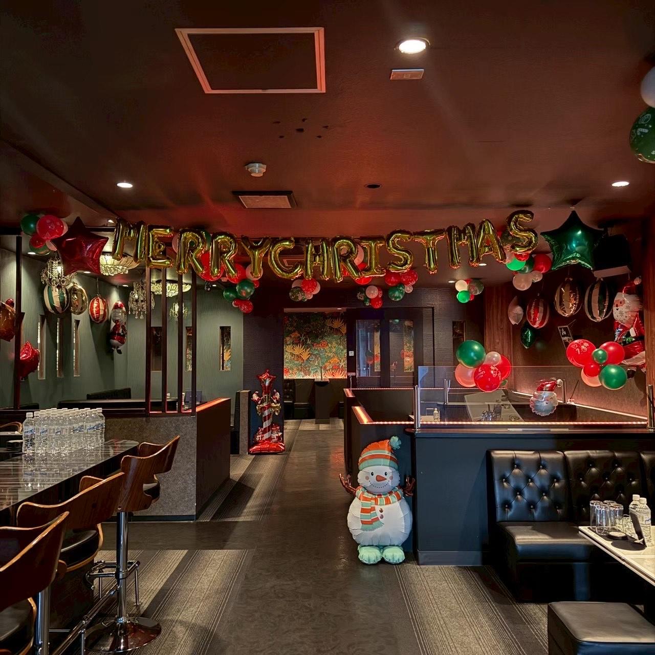 サンタやスノーマンのモチーフバルーンも取り入れ、
