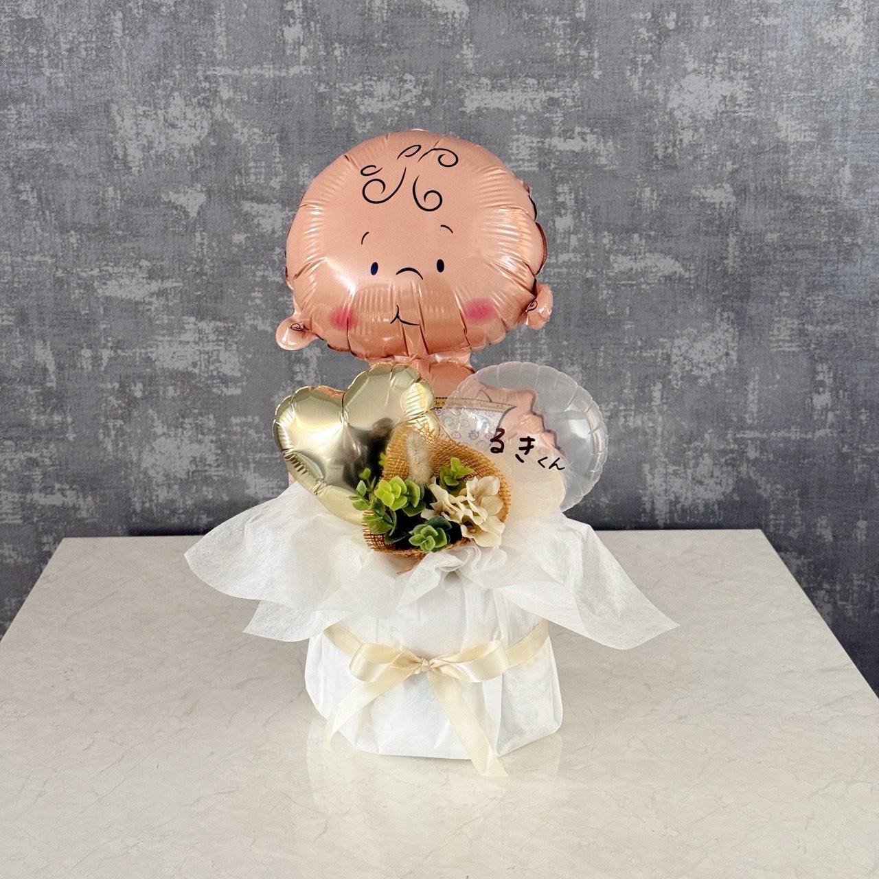 Happy Birthday お誕生日 おめでとうございます オレンジ ゴールド かすみ草 文字入れ お花 造花 アレンジメント バルーン 卓上 プレゼント コンパクトサイズ 全国発送 お問い 合わせ ご予約は 公式LINE iBalloon