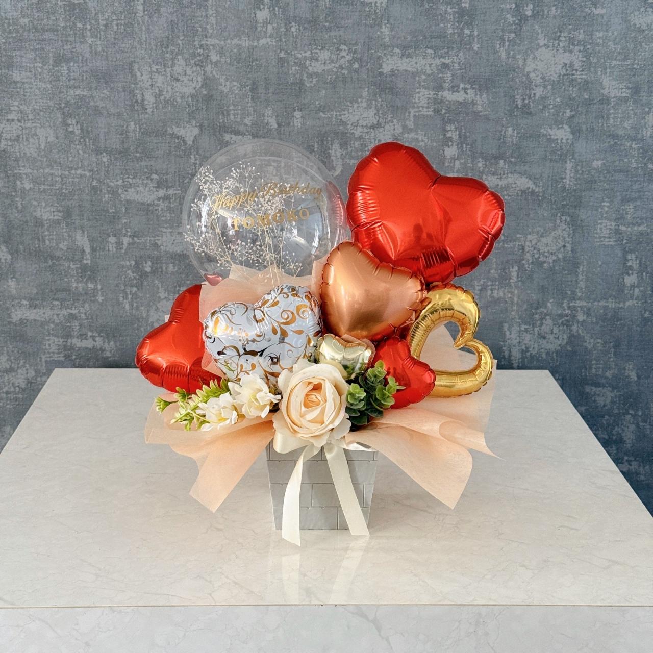 HAPPY BIRTHDAY お誕生日 お祝い フラワーインバルーン 風船の中に バルーン バラ 造 花 コラボ 大人カラー アレンジメント 長持ちタイプ おまかせオーダー 全国発送 松江 iB alloon